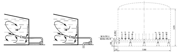 CJG系列罐用喷射式混合器,在大型贮存罐中的作用尤为显著,其安装方位如图所示。
