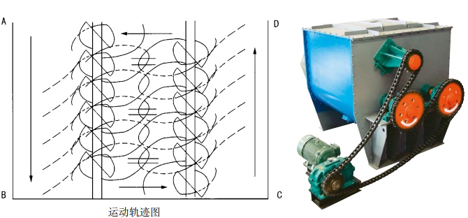 应用领域 ● 农业领域:农药、化肥、饲料及各种添加剂生产中的混合。 ● 食品工业:小麦粉、谷物的混合,奶粉的混合,香料及微量成份的混合,咖啡、味精、食盐的混合。 ● 干燥:粉料的干燥。 ● 化学工业:化学药品、化妆品、洗涤剂、涂料、树酯、玻璃硅、颜料的混合。 ● 其它:药品生产、添加剂、塑料等行业的混合。 性能特点 ● 该机通过两根等速反向旋转轴上特殊布置的桨叶,使物料作径向、环向、轴向三向运动,形成复合循环,在极短的时间内达到均匀混合。 ● 可进行固(粉)-固(粉)(粉体粒度300-2000um)混合。 ● 根据用户要求,还可以另加喷液及夹套装置,使之可作为固(粉)-液(含液量<15%的混合及干燥设备使 用。 ● 对比重、粒度等物性差异较大的物料混合时不产生偏折,而获得十分均匀的混合物。 ● 混合精度,固-固混合在1:1000配比时,标准偏差为十万分之三~八, 含量波动误差<2%(变异因子)。 ● 混合速度快,一般粉体混合只需十分钟左右。 ● 能耗低,是一般混合机的1/4~1/10。 ● 可密闭操作,运转平衡可靠,维修方便。 工作原理 本机由电机通过减速机、链轮带动二根平行的主轴以一定的转速作等速反向转动。以一定角度安装在主轴上的桨叶将物料抛洒到整个容器空间,使物料处于瞬间失重状态,广泛交错对流、扩散,从而达到均匀混合。对比重和粒径及形状差异悬殊的物料混合时不会产生偏析,是一种迅速高效的粉体混合设备。本机可按用户要求,增加夹套及分散棒,也可提供气动出料及喷液装置。接触物料部分材质为碳钢或不锈钢。