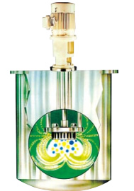 承受剧烈的机械及液力的剪切作用,将颗粒撕裂和粉碎,与此同时新的物料被吸进转子中心,被推出的物料在容器壁面改变方向,从而完成了一个循环。