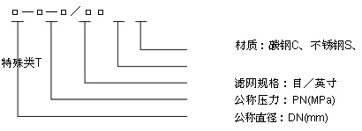 产品概述 过滤器是除去液体中少量固体颗粒的小型设备,可保护压缩机、泵、仪表和其它设备的正常工作,当流体进入置有一定规格滤网的滤筒后,其杂质被阻挡,而清洁的滤液则由过滤器出口排出,当需要清洗时,只要将可拆卸的滤筒取出,处理后重新装入即可,因此,使用维护极为方便。 本公司生产的过滤器具有结构紧凑、过滤能力大、压损小、适用范围 广、维护方便、价格低廉等优点,其主要适用的物料有: 化工、石油化工生产中弱腐蚀性物料,如:水、油品、氨、烃类等。 化工生产中的腐蚀性物料,如:烧碱、纯碱、浓稀硫酸、醛酸等。 制冷中的低温物料,如:液甲烷、液氨、液氧和各种冷剂。 食品、制药生产中有卫生要求的物料,如:啤酒、饮料、乳制品、糖 浆等。 型号标注 本公司生产的管道过滤器,主要有:1、Y型过滤器 2、T型过滤器 3、篮式过滤器 4、临时过滤器 5、气体过滤器。 其型号标注如下:
