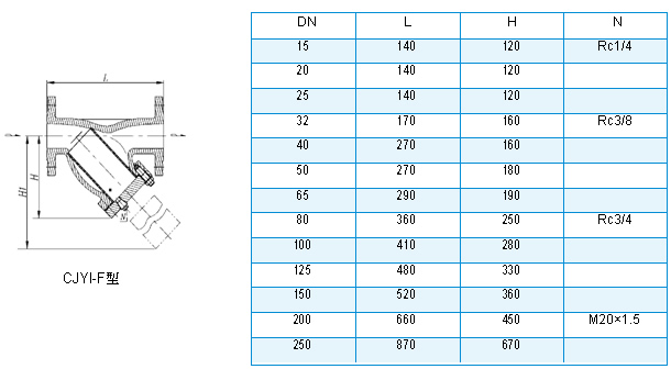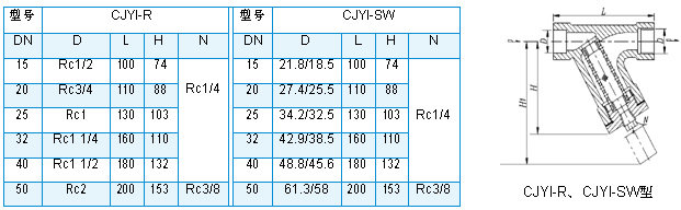 Y型过滤器 (1)Y型铸造螺纹连接式(CJYI-R型)、承插焊接式(CJYI-SW型)