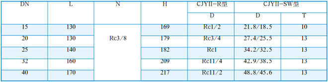 (4)Y型焊接锥管螺纹式(CJYII-R型)、承插焊式(CJYII-SW型)(DN15~40,PN≤5.0MPa)