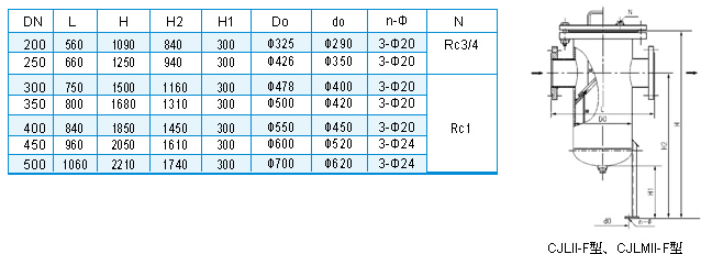 (4)篮式法兰连接直通封头式过滤器(CJLII-F型)(PN≤5.0MPa, DN200~500)(5)篮式法兰连接重叠型直通封头式过滤器(CJLMII-F型)(PN≤5.0MPa, DN200~500)CJLII-F,CJLMII-F型(6)篮式法兰连接高低接管平底过滤器(CJLIII-F型) (PN≤5.0MPa, DN25~300)(7)篮式法兰连接重叠型高低接管平底过滤器(CJLMIII-F型)(PN≤5.0MPa, DN25~300)CJLIII-F型、CJLMIII-F型