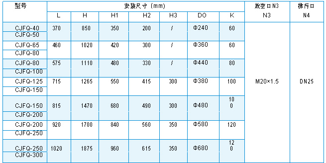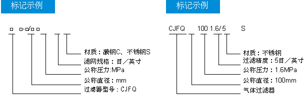 (1)CJQ型气体过滤器(2)CJFQ型气体过滤器产品概述 CJFQ型气体过滤器是一种新型、高效气体除尘设备,广泛用于石油、天然气工业部门一般含尘量的气体主管线和旁通管。亦是城市天然气、煤制气输配系统安全、可靠运行不可缺少的气体净化设备。具有结构先进、除尘效 率高、操作维护方便等优点。主要技术参数 公称直径:DN40-DN300 工作压力:1.0-5.4MPa 工作温度:≤80℃ 处理量:≤12000m3/h (工作状态下)选用要点 选用本系列产品必须注明介质,操作压力及温度。CJFQ型气体过滤器主要用于干气过滤,如介质含水较高时,应在设备前安装我公司生产的预分离器,以保证过滤器效果。产品规格